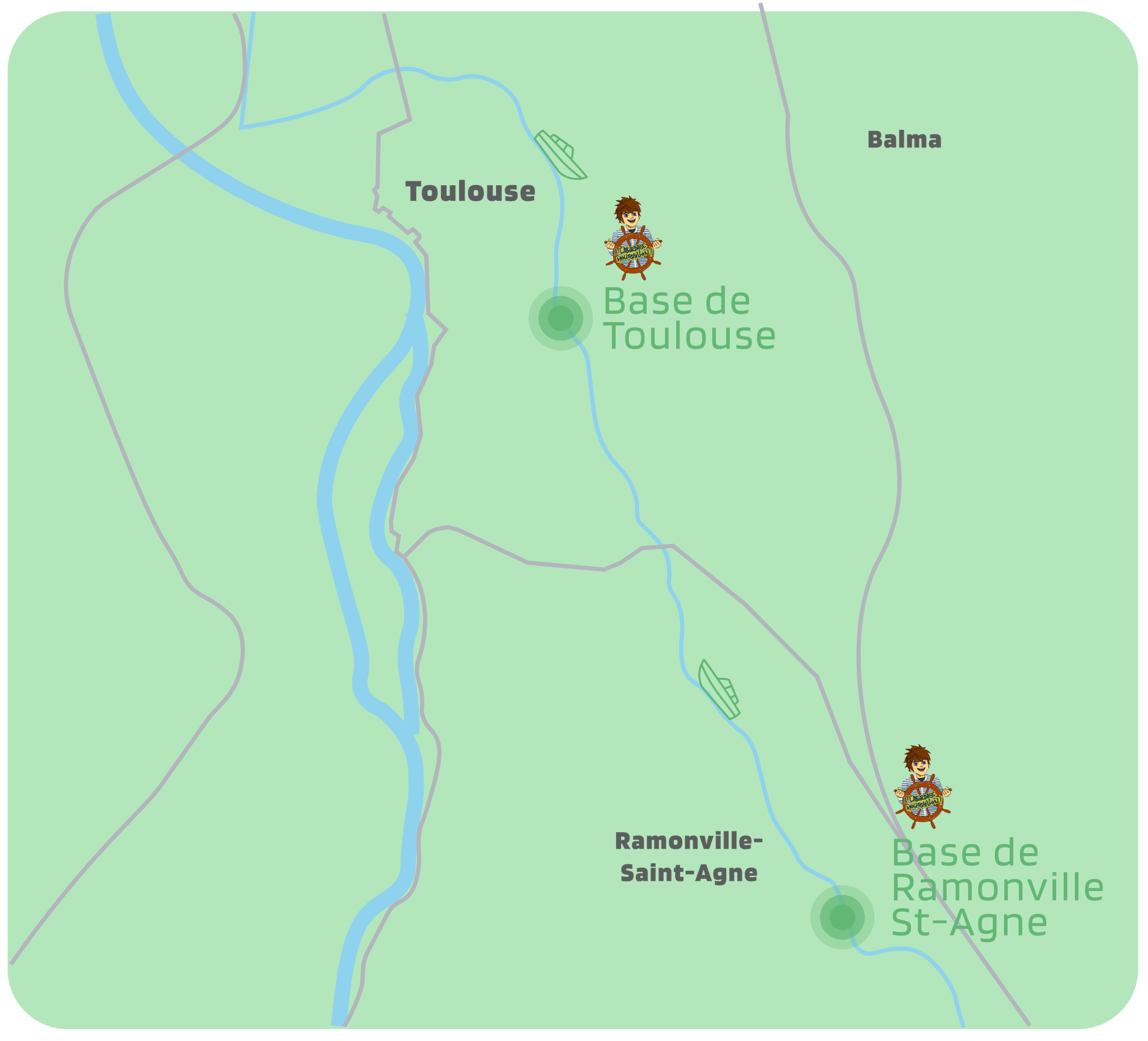 A l’Abordage Moussaillon propose un service de location de bateaux sans permis (bateaux électriques) pour 1 h à 4 h de temps, au départ du pont des Soupirs à Toulouse ou de Port sud, à Ramonville-Saint-Agne.